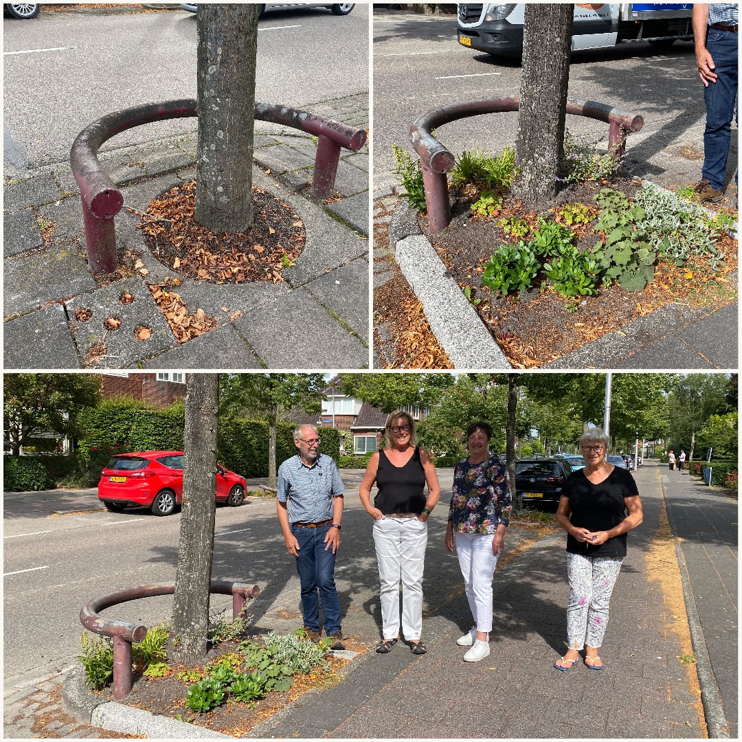 Langs de Molenweg zijn alle boomvakken vervangen voor grote boomspiegels. Een boomspiegel is het stuk grond rondom de stam van een boom dat toegankelijk is voor lucht en water. Een boomspiegel zorgt onder andere voor meer lucht bij de wortels en een betere afwatering van regenwater. Bovendien is er ruimte voor planten in de boomspiegel, wat goed is én leuk staat! De bewoners aan de Molenweg helpen de boomspiegels verzorgen en geven water. Een mooi initiatief!